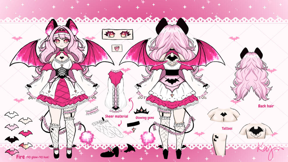 Hihi!! My name's Kay, the cutest fiery bat around. I lub to eat dino nuggies and donuts~!